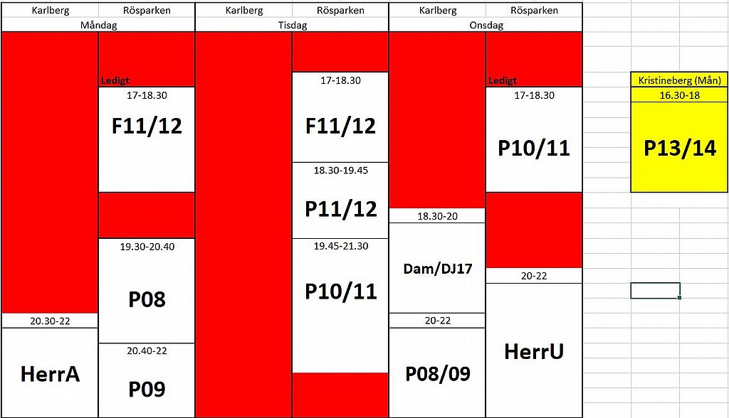 Uppdatering träningstider.