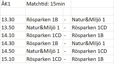 Spelschema ÅK1 Lördag