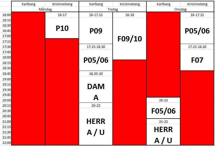 Uppdatering träningstider.