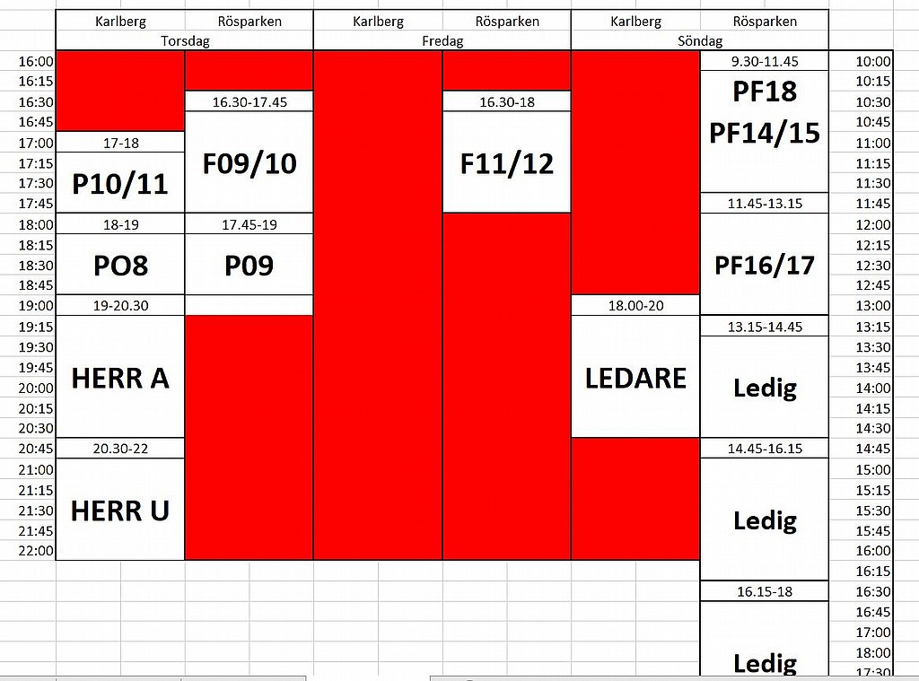 Uppdatering träningstider.